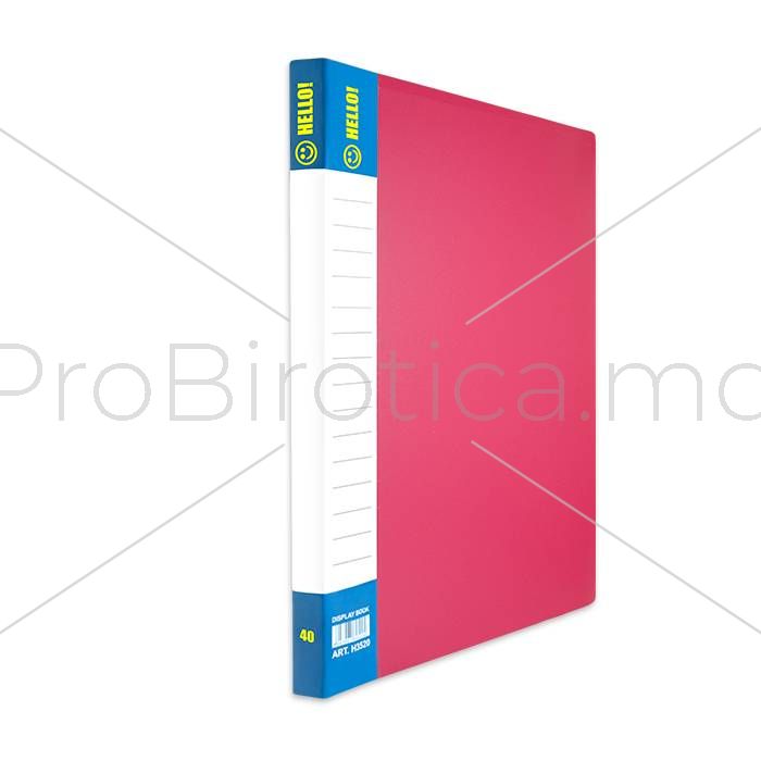 Mapă cu folii format A4 fabricată din plastic neted, grosimea - 550 mkm, coperta flexibilă. Cotorul mapei poate fi completat manual. Folii lucioase netede cu densitatea de 20 mkm.