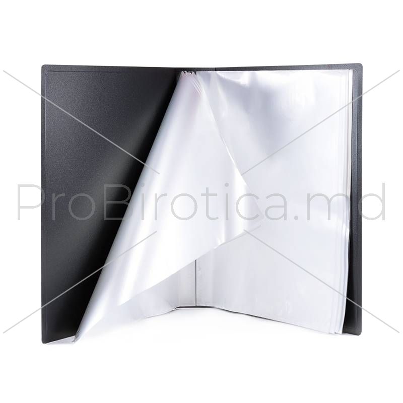 Mapă cu folii format A4 fabricată din plastic neted, grosimea - 550 mkm, coperta flexibilă. Cotorul mapei poate fi completat manual. Folii lucioase netede cu densitatea de 20 mkm.