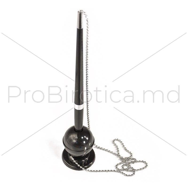 Pix cu bilă pentru birou, cu lănțișor pe suport clasic elegant, fabricat din plastic.