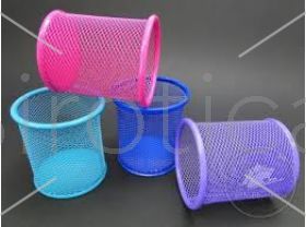 Suport pentru pixuri, rotund din metal, tip plasa, color