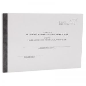 Carte cancelara "Registru de evidenta a formularelor cu regim special", cu 50 file, produsa din hirtie alba, offset, de calitate inalta. ;