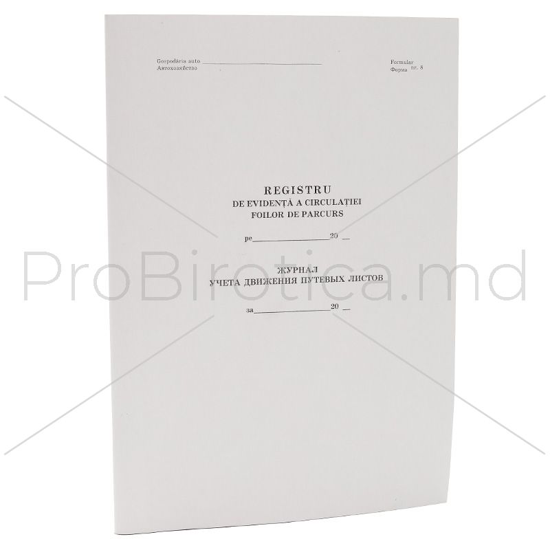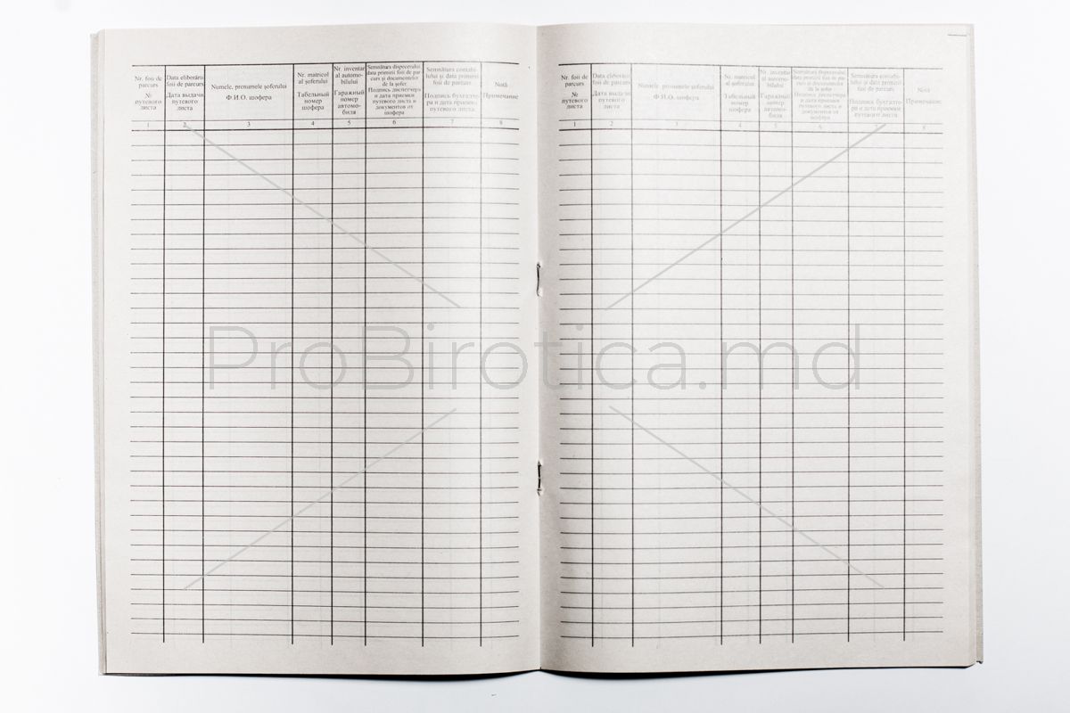 Бухг книга "Registru de evidenta a foilor de parcurs", 50 листов, белый офсет 29.95 лей